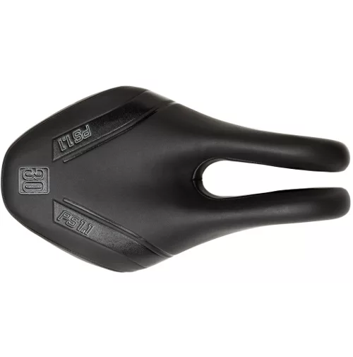 Just like other performance short saddles, the PS 1.1 has an upward slope at the rear – providing superb hip support when your body is rotated forward in the aero position, or an aggressive road riding position. This tends to be preferred by athletes that don’t move around on the seat excessively while riding. It is also a top choice for triathletes and time trialists who ride on the aero bars, or for flat courses in which the athlete likes to ‘settle in’ to one position and go.