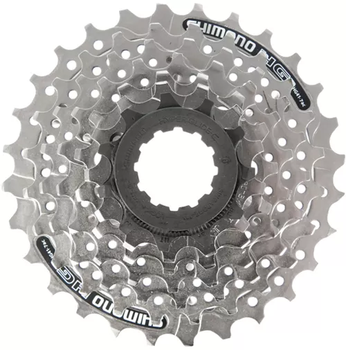 This 7 Speed Cassette from Shimano offers a reliable, hard-wearing component that withstands whatever pressure you meet on the trail. Featuring computer-designed teeth, with corrosion-resistant steel construction and a durable nickel-plated finish for exceptional strength. This cassette also benefits from cut out sprockets for a lightweight, without compromise on stiffness.Â