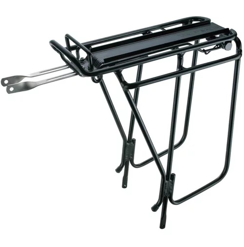A great rack for long distance touring. Integrated top plate and side bar accept Topeak MTX series bags and other cargo.